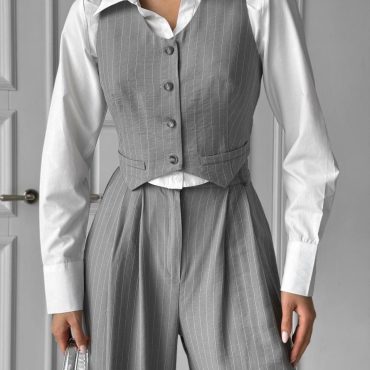 Formal Event Suit For Women Striped Pants Set