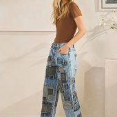 Women’s Patchwork Jeans: Mineral Wash Gray Patch Denim